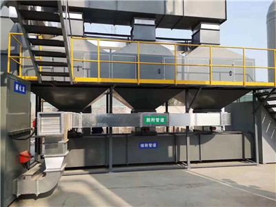 利用催化剂使有害气体中的可燃组分在较低的温度下氧化分解的净化方法。对于 CnHm 和有机溶济蒸汽氧化分解生成CO2H2O并释放出大量热量。该装置主体结构由净化装置主机、引风机、控制系统三大部分组成。其装置包括:阻火除尘器、热交换器、预热器、催化燃烧室。
