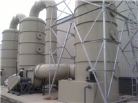 洗涤塔是利用气体与液体间的接触,而将气体中的污染物传送到液体中,然后再将清洁气体与被污染的液体分离,达到清净空气的目的。 废气经由填充式洗涤塔,采用气液逆向吸收方式处理,即液体自塔顶向下以雾状(或小液滴)喷撒而下。废气则由塔体(逆向流)达到气液接触之目的。此处理方式,可冷却废气、调理气体及去除颗粒,再经过除雾段处理后,排入大气中。
